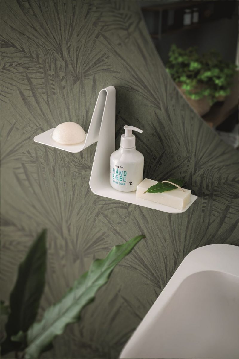 La mensola con doppio appoggio è versatile e facile da installare. Accostandone più di una è possibile creare composizioni personalizzate che decorano ogni parete rendendola unica.