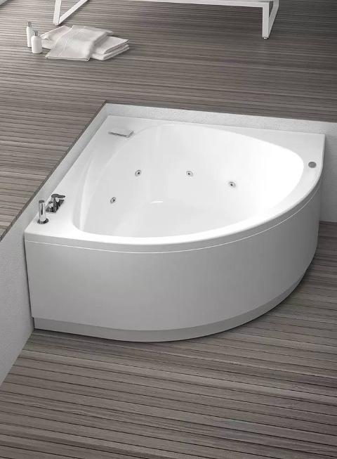 Vasca angolare dal design minimale, le sue dimensioni garantiscono comodità è benessere.