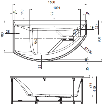 Vasca Slim Edge Asimmetrica Sistema Minimal Mix 160x90 completa di
