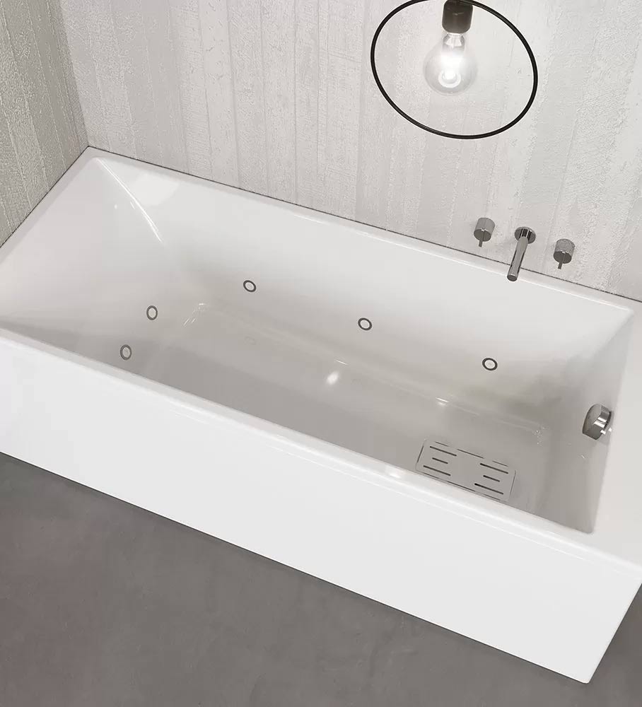- MINIMAL MIX: 8 minijets a filo bianco/acciaio, 12 micro iniettori ad aria, Doppio comando retroilluminato, Massaggio continuo acqua, Massaggio onda e continuo aria, Sensore di livello, Colonna di scarico s/e cromo inclusa, Sifone di scarico non compreso