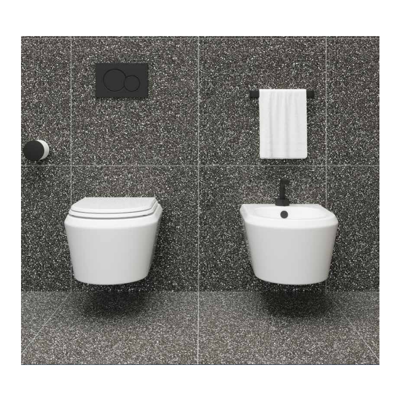 Vaso sospeso senza brida con coprivaso slim rallentato.