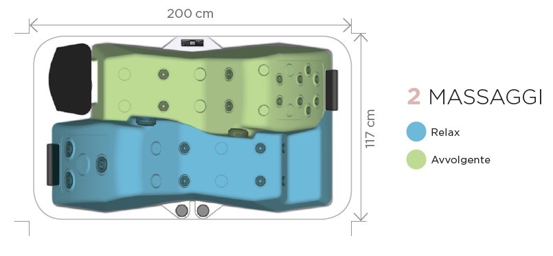 Con i suoi due posti offre due tipi di massaggio: Relax ed Avvolgente. In uno spazio contenuto, è il luogo perfetto per rigenerarsi. Distensione e relax: un binomio perfetto
