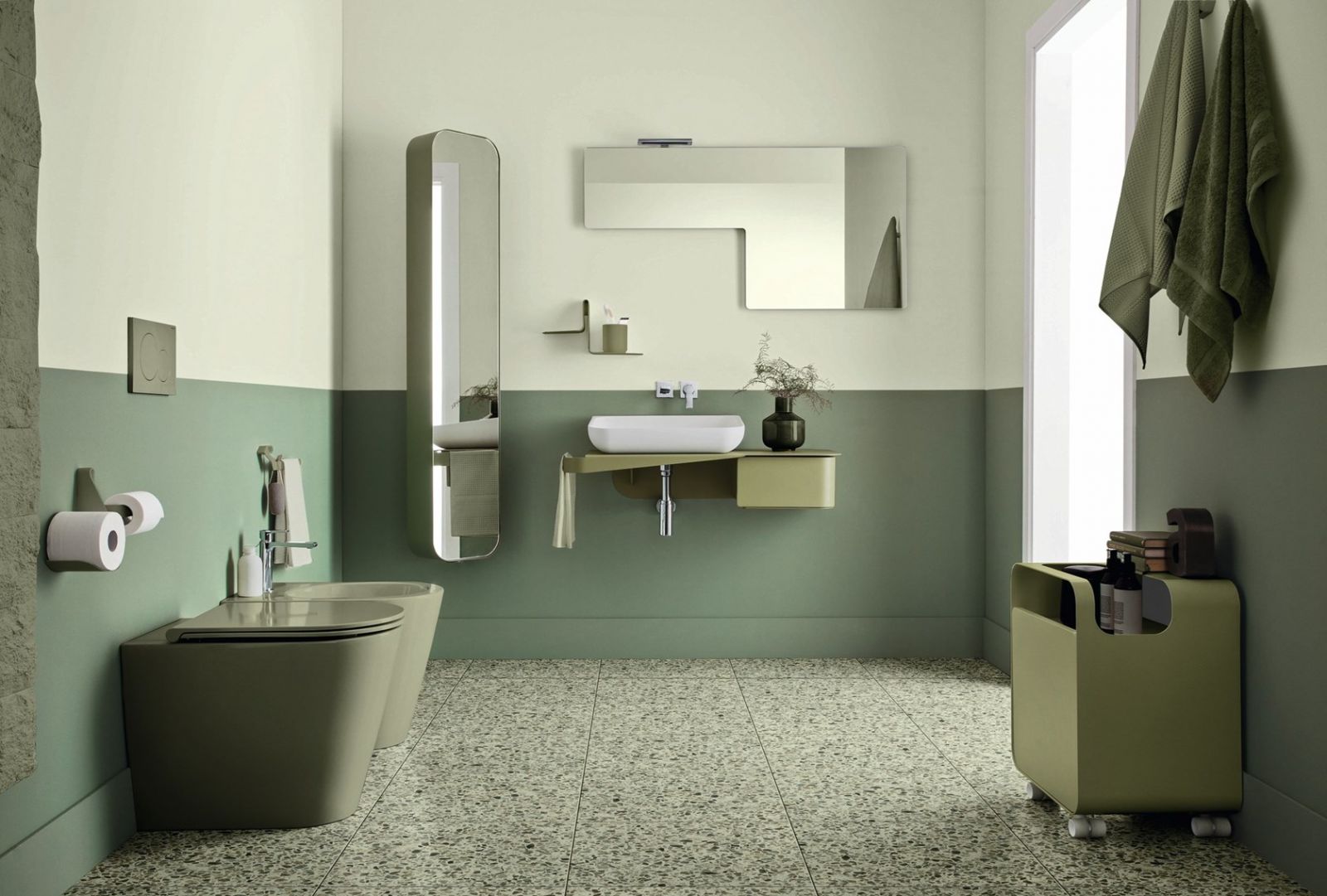 Il porta rotolo ha un design originale ed è realizzato in metallo verniciato, nei colori Arblu. Nella sua struttura contiene un doppio appoggio: un’asta porta rotolo e una mensola sagomata per avere sempre a disposizione un rotolo di scorta.